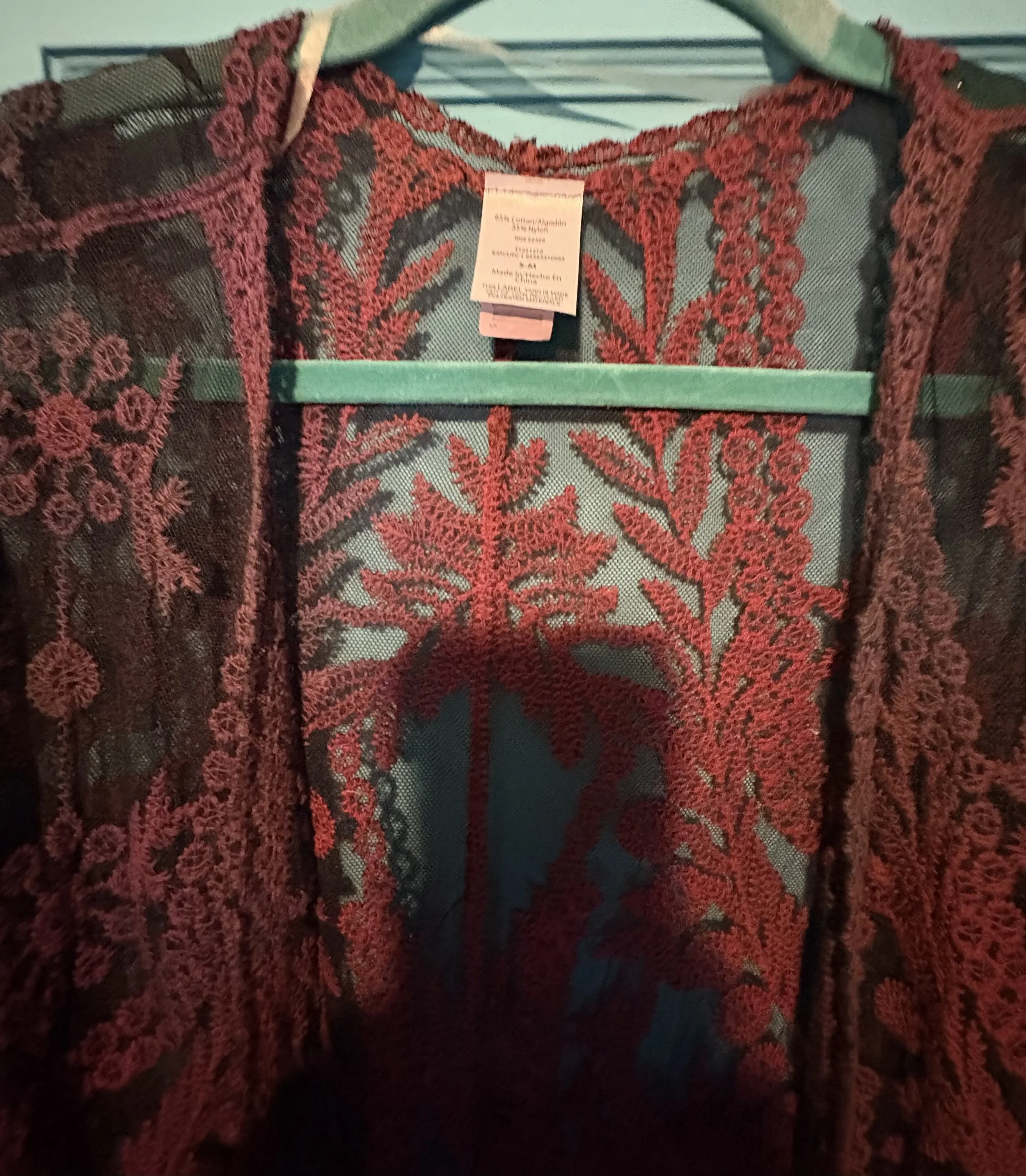 Lace Kimonos Categories: All Button Down Shirts Lace Kimonos Jackets Dresses T-Shirts Hoodies Sweaters Jeans Pants Velvet Dogs Kids All / All Button Down Shirts Lace Kimonos Jackets Dresses T-Shirts Hoodies Sweaters Jeans Pants Velvet Dogs Kids Hand Dyed Floral Lace Kimono Autumn Colors $55.00 Purchase Added! Colorful Hand Dyed Lace Kimono S/M $55.00 Purchase Added! Sheer Lace Kimono Hand Dyed $45.00 Purchase Added! Maroon and Black Hand Dyed Lace Kimono S/M $55.00 Purchase Added! Reverse Dyed Lace Kimono Black and Maroon-ish $55.00 Purchase Added!